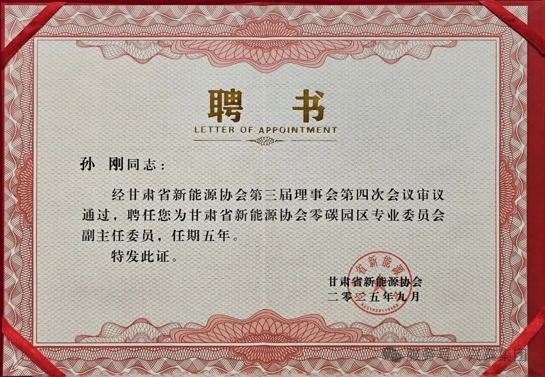 9月24日,甘肃省新能源协会零碳园区专业委员会成立大会,暨首届零碳园区产业发展与技术研讨会,在兰州国际太阳能中心召开。大会以“绿色赋能·零碳引领”为主题,汇聚政府、企业、科研及金融机构代表,共同研讨零碳园区发展路径。兴泰能源公司副总经理孙刚应邀出席,并被正式聘任为该专业委员会副主任委员。