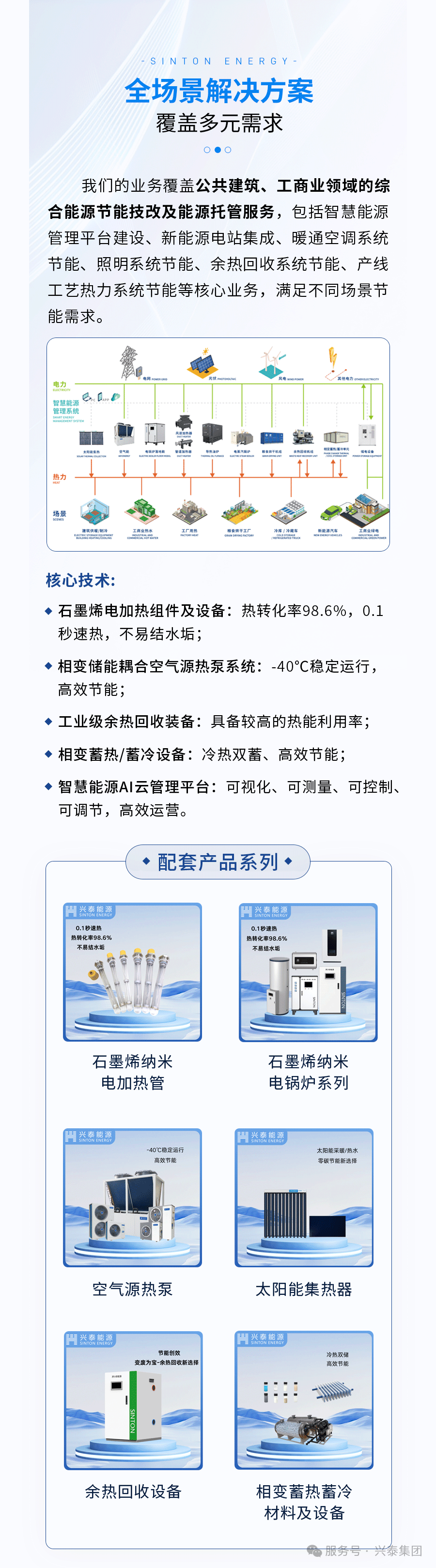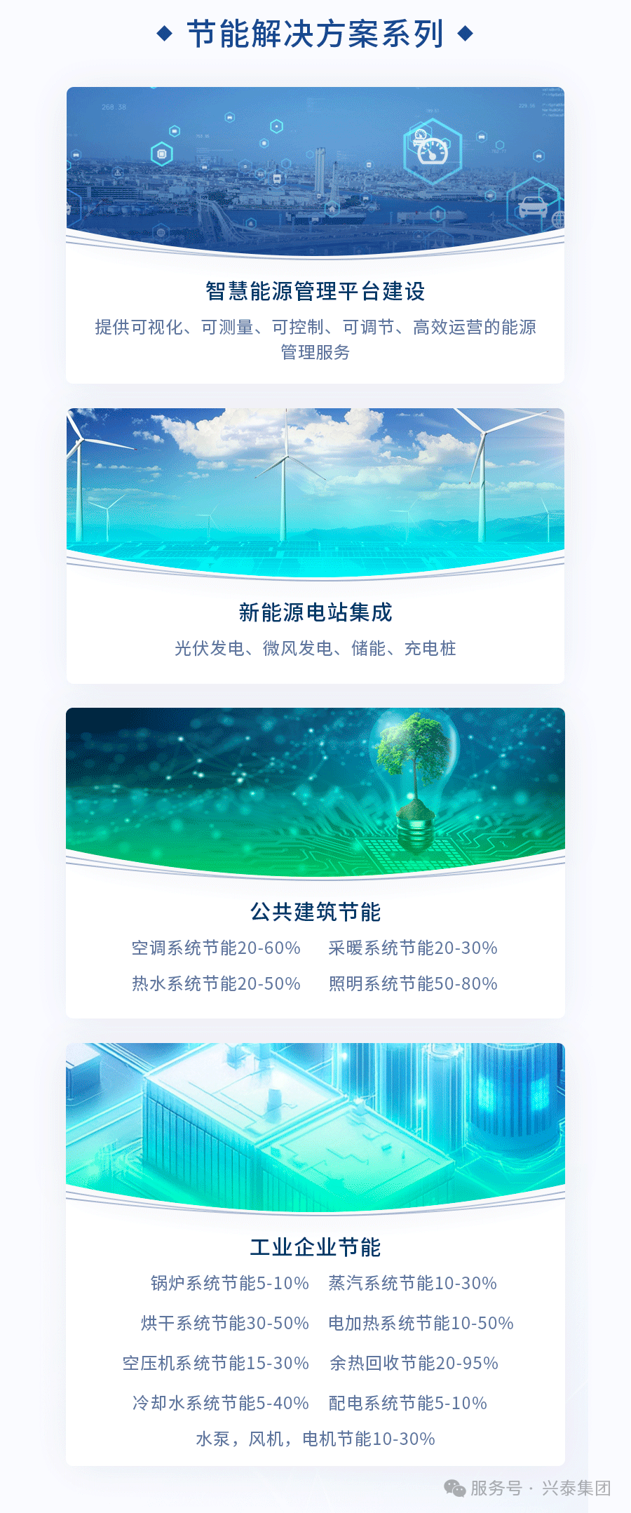 作为节能降碳系统解决方案的领先提供商,兴泰能源以“成为节能降碳领域的标杆服务商”为愿景,通过智造、服务、研发、运营四大板块,持续为客户提供全方位的能效提升与碳减排支持。未来,公司将继续发挥技术与实践优势,积极参与零碳园区建设,为达成“双碳”目标贡献专业力量。